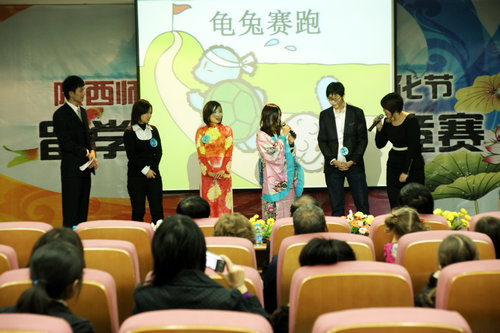 第五环节的“故事接龙”是大家耳熟能详的故事《龟兔赛跑》。在台上的留学生口中,这个故事再次被有趣地改写——兔子在失败后又主动比试了四次,却因睡了四次,又输了四次。终于在第五次的比赛中,兔子赢了乌龟!崔大韩画龙点睛式的总结——“兔子的爷爷说人生就和这场赛跑一样。”赢得了在场所有评委的青睐!