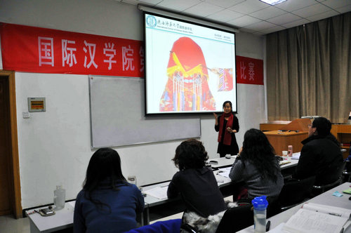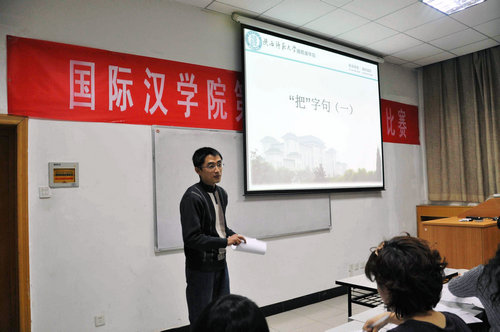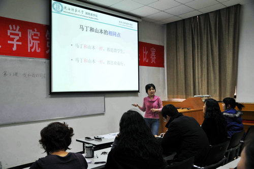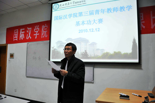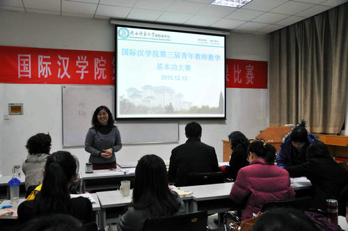 副院长赵学清主持了本次比赛,他简要介绍了此次比赛的筹备情况和举办意义并预祝教师们取得优秀的成绩。随后,比赛正式开始。八名青年教师分别从汉语写作、汉语口语、汉语语法、民歌练唱、汉字文化等角度入手,充分利用比赛时间,演绎了一堂堂精彩而生动的教学示范课,并赢得了台下观众阵阵热烈的掌声。副院长王晓凌也有感而发,对各位青年教师的精彩讲课给予了高度赞扬,肯定了各位教师的成绩,同时也指出了讲课中存在的一些小问题,并希望教师们在以后的教学过程中不断取得进步。