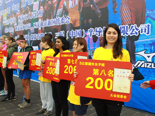 76名外国留学生参加了今年的中国西安城墙国际马拉松赛,经过奋勇拼搏,澳大利亚籍学生Loren Osborn最终从2693名参赛选手中脱颖而出,在今年还有外籍专业马拉松运动员参赛的情况下勇夺外国女子组5km项目第八名,并荣获组委会颁发的荣誉证书和奖金。
