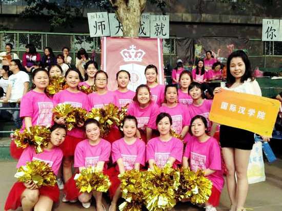 中外运动健儿们在赛场上各显身手,赛场下10级对外班啦啦操队员、看台观众们也用热情的舞蹈和响亮的口号为运动员们加油助威,同学们文明观赛,积极投稿,体现了国际汉博彩体育