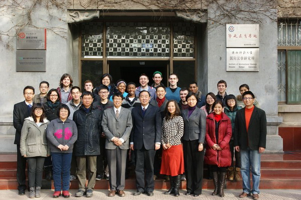 楼前合影留念。在接下来的半年时间里,学生们还将在中国农历春节期间住在中国居民家里生活两周,体验中国人欢庆新春佳节的氛围和习俗,并在冬季和春季学期结束后,深入西安的企业进行近2个月的实习,以深入了解中国的博彩体育。