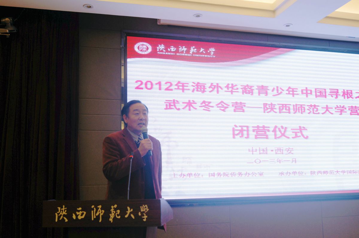 院长张建成在闭营仪式上讲话,他对本次活动的顺利举办表示衷心祝贺,希望华裔青少年通过此次冬令营活动能够加进一步深对中华民族优秀传统文化的理解,不忘祖国对他们的殷切希望。华裔青少年带队教师代表和学生代表分别在仪式上分享了参加此次冬令营的心得体会。他们纷纷表示,此次冬令营活动给他们留下来快乐而深刻的印象,它不仅是一次学习之旅、寻根之旅,也是一次友谊之旅、追梦之旅,十五天的行程紧凑丰富,收益良多。随后,国际汉博彩体育