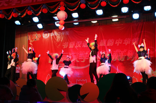 象征着喜庆的中国红灯笼在会场周围延绵开来,为整个晚会营造了浓厚的迎新氛围。来自美国、爱尔兰、比利时、哥伦比亚、韩国、日本、越南、哈萨克斯坦等国家的百余名留学生以及中国学生近千人欢聚一堂,共赏文化,一起度过了一个难忘的夜晚。