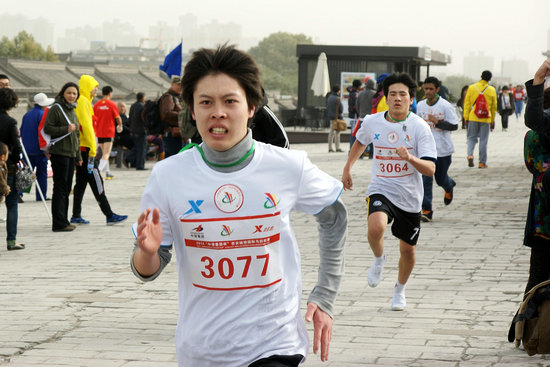 的近60名留学生们却一个个热血沸腾地参加了“2012西安城墙国际马拉松赛”。