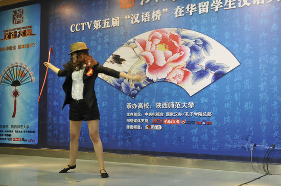 整个赛程分为自我介绍、才艺展示和评委提问三个环节。评委提问环节为选手逐一回答评委提出的问题,重在考察留学生汉语知识和学习汉语的能力;才艺展示环节则是选手们“各显神通”的大舞台,五洲学子为全场呈现了一场由中文歌曲、民族舞蹈、武术、乐器演奏、书法表演组成的中华文化大串烧。