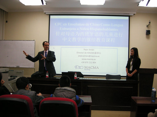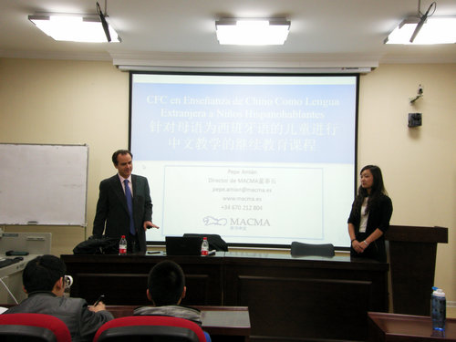 一层报告厅主持了2012年马德里自治大学对外汉语教师资格课程带薪实习项目说明会。