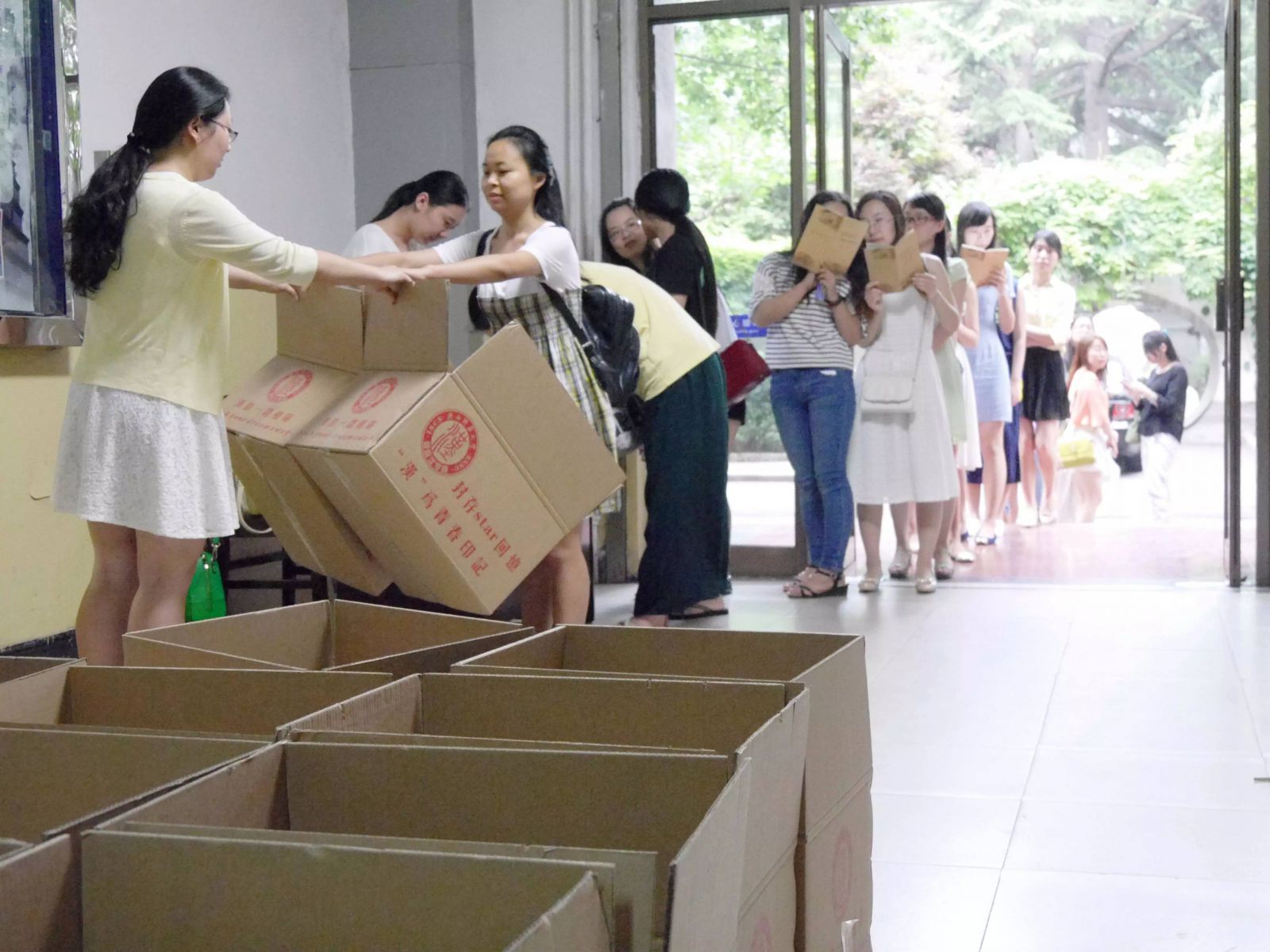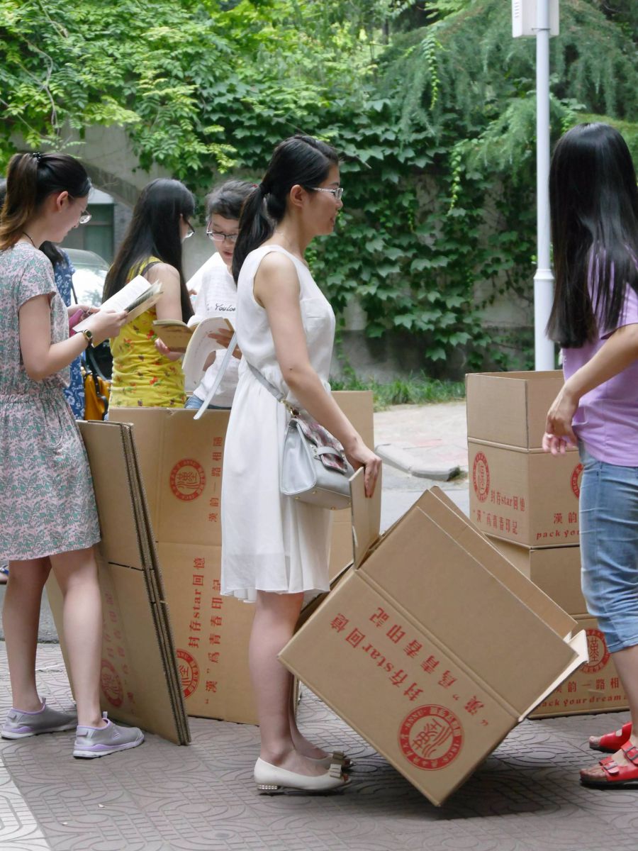 快来围观毕业生们领取毕业纸箱的盛况~