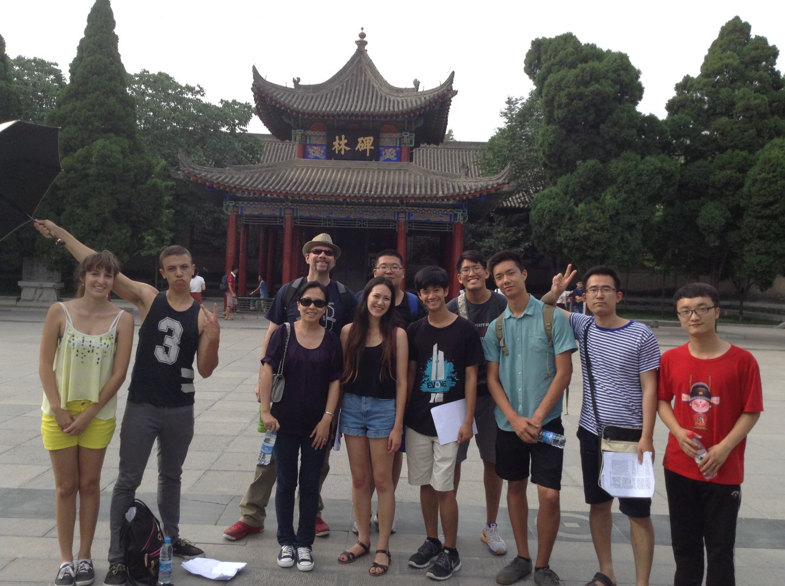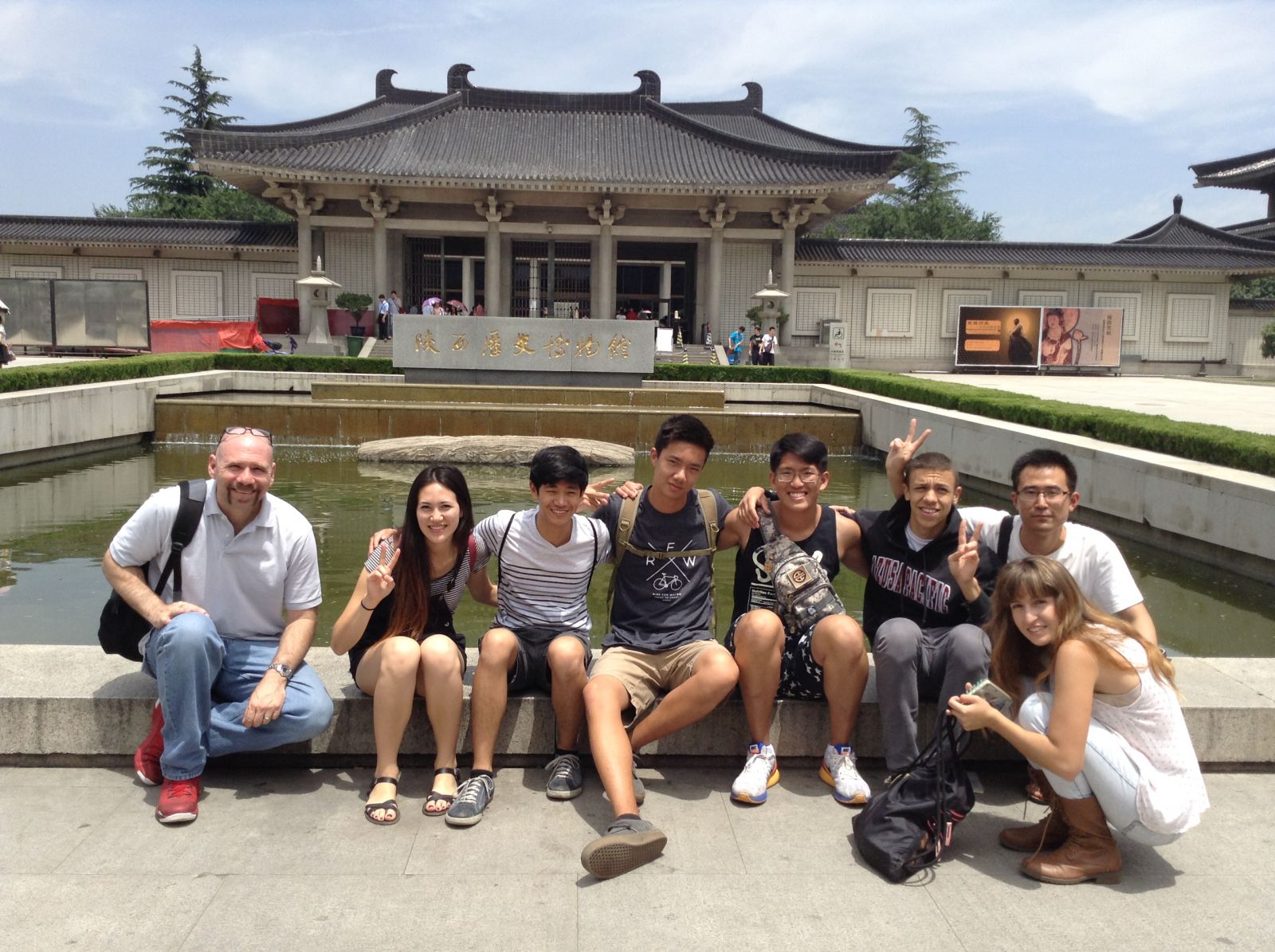 组织学生先后参观了秦始皇陵兵马俑、大雁塔、陕西历史博物馆、西安明城墙景区、碑林博物馆、关中民俗博物院、半坡遗址博物馆以及大唐芙蓉园等人文景点,还到访户县欣赏并体验了当地的农民画艺术;专题讲座部分主要教授了学生门如何制作中国结,鉴赏中华茶艺以及练习书法;在和学生交流部分,他们一一与中国文化伙伴配对,完成了“寺庙一起找”文化探险任务,互相学习包饺子以及撕名牌等趣味活动。