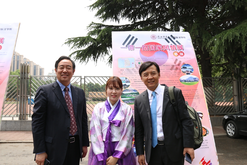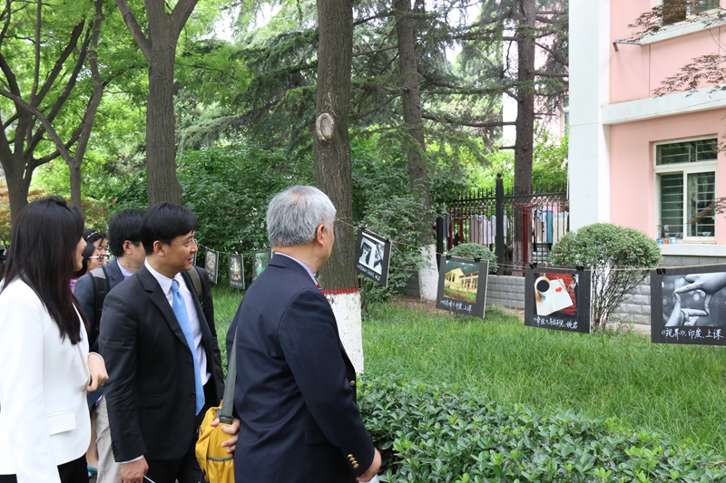 庆祝大会结束后,参会领导、嘉宾和中外学生还一起参观了在雁塔校区办公楼前举办的博彩体育
