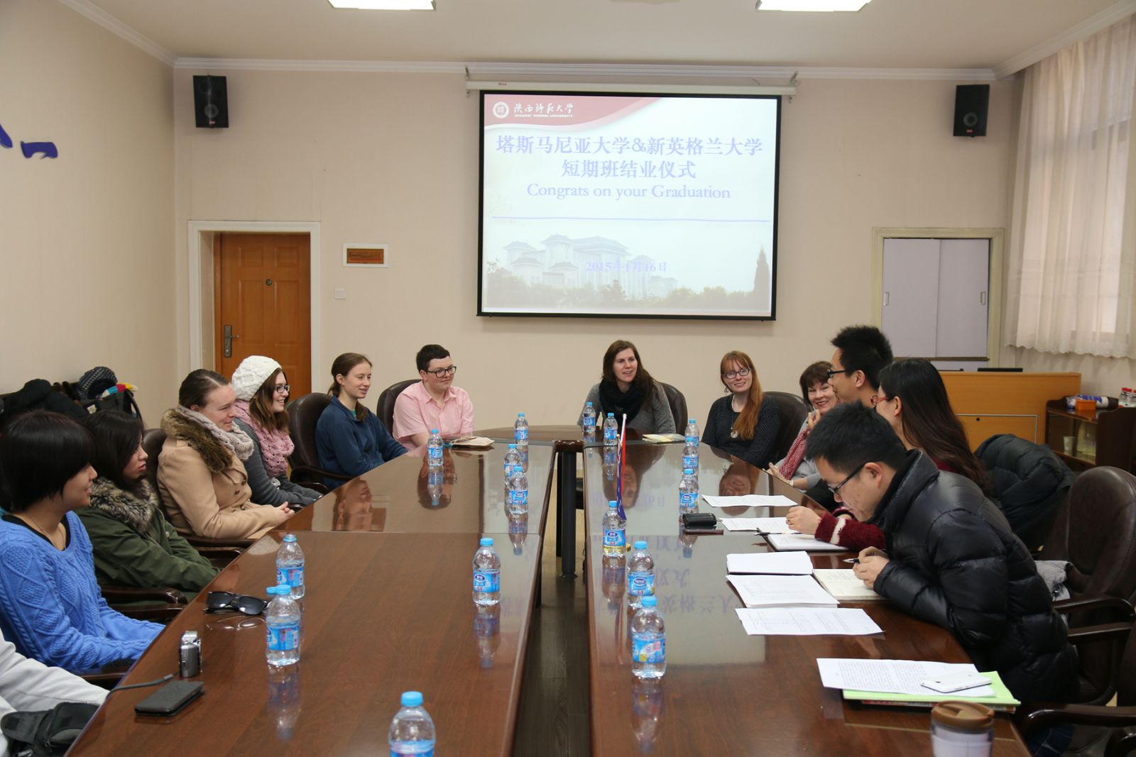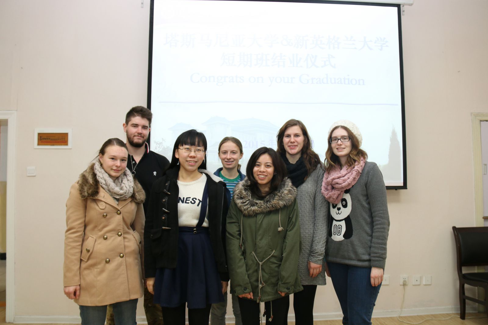 1月16日,来自澳大利亚塔斯马尼亚大学和新英格兰大学的16名学生在经历了为期二个月的汉语及中国文化学习之后顺利结业。国际汉博彩体育 副院长吴媛为同学们颁发结业证书,并希望他们回到澳大利亚之后可以继续汉语学习,做好中澳两国友谊的使者。