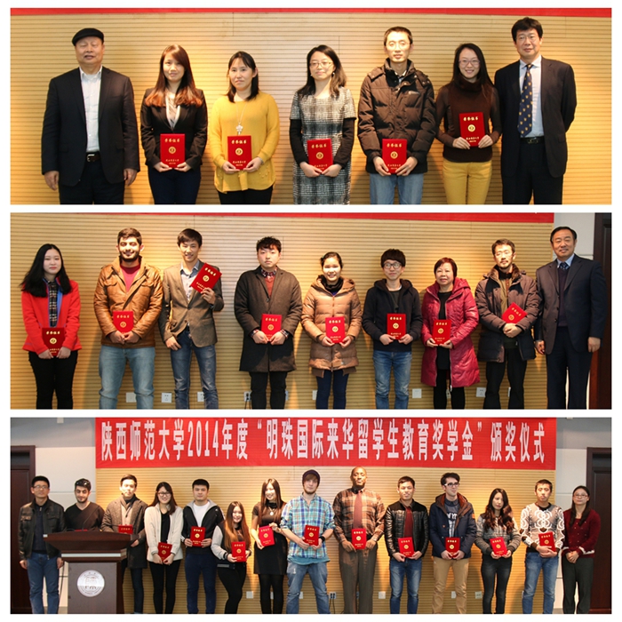1月8日下午,2014年度“明珠国际来华留学生教育奖学金”颁发仪式在雁塔校区崇鋈楼闻道堂举行。陕西明珠国际集团董事长李继和、家居营运中心总经理刘鹏、博彩体育