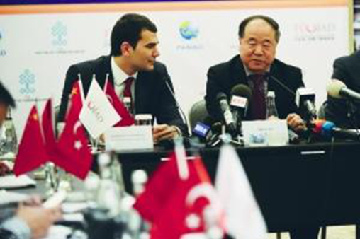 毕业生库太在土耳其新闻发布会上给莫言担任翻译