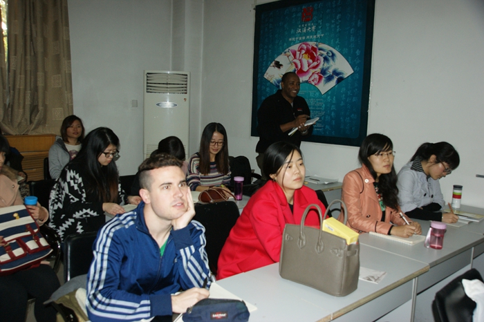 汉语言文学专业四年级的韩国籍留学生崔先咏为大家奉献了一节精彩纷呈的韩国语及韩国文化课程,吸引70余名中外师生热情参与。