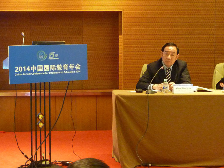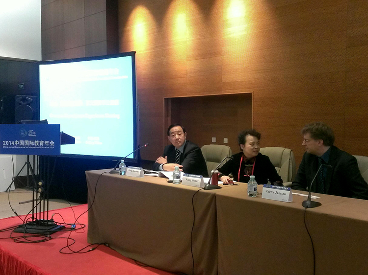 院长张建成应邀出席年会论坛,并担任主持,与国内外知名专家学者就加强招生宣传,扩大国际学生规模展开对话与交流。