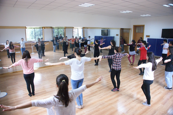 兴趣课堂于20日下午2点30分准时开课,热身运动完毕之后,罗燕老师首先从最基本的拉丁舞站姿开始教起,示范练习之后,逐步加深到简单的舞步行进。这看起来简单的几个舞蹈动作,却着实难倒了在场的初学者们。罗燕老师耐心地从胯部扭动技巧、脚步滑动姿势及整体身形摆动等方面给大家进行示范纠正,不一会儿的功夫,学生们原本散乱的动作也变得有模有样起来。几轮集体练习之后,罗燕老师将在场学生五五分组,并让他们按组将所学进行展示,兴趣课堂在学生们相互点评及罗燕老师的单独点评之中圆满结束。罗燕专业细致的演示讲解,得到了在场学生的一致好评。韩国籍学生崔先咏表示,她之前就对拉丁舞非常感兴趣,感谢博彩体育