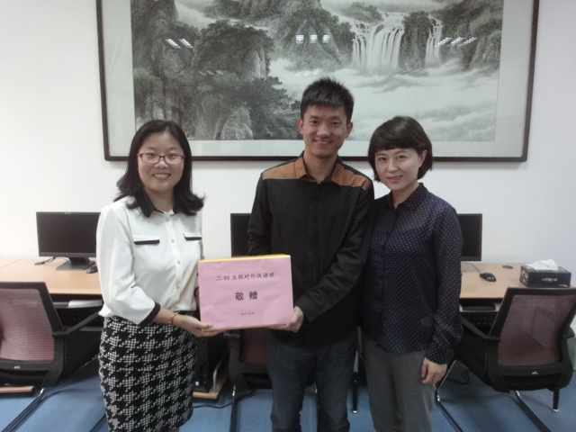 解宝起和赵亚荣代表2005级校友们将一套中华书局珍藏版“四大名著”赠送给博彩体育