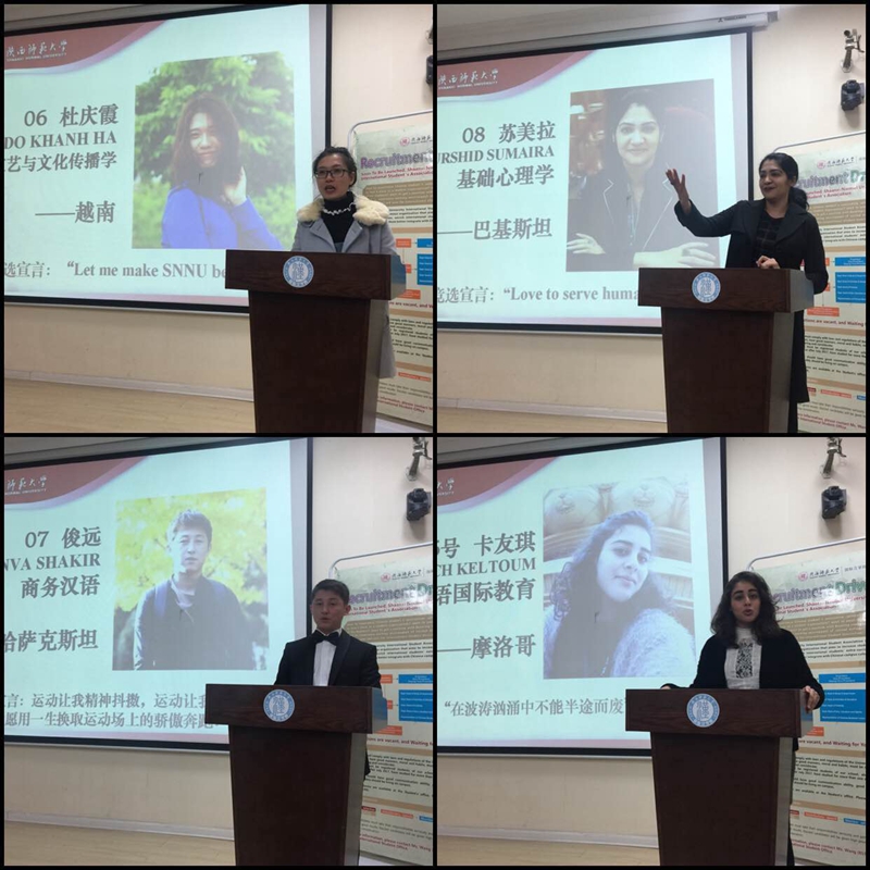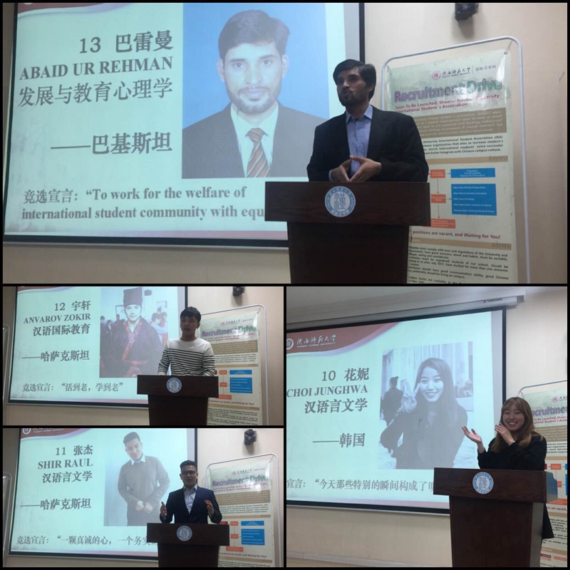 副院长吴殿华、留学生管理办公室主任蔺丰辉、留办全体成员以及来自45个国家的80余位师生代表参加了本次竞选大会。会议由留学生辅导员王芙坤主持。