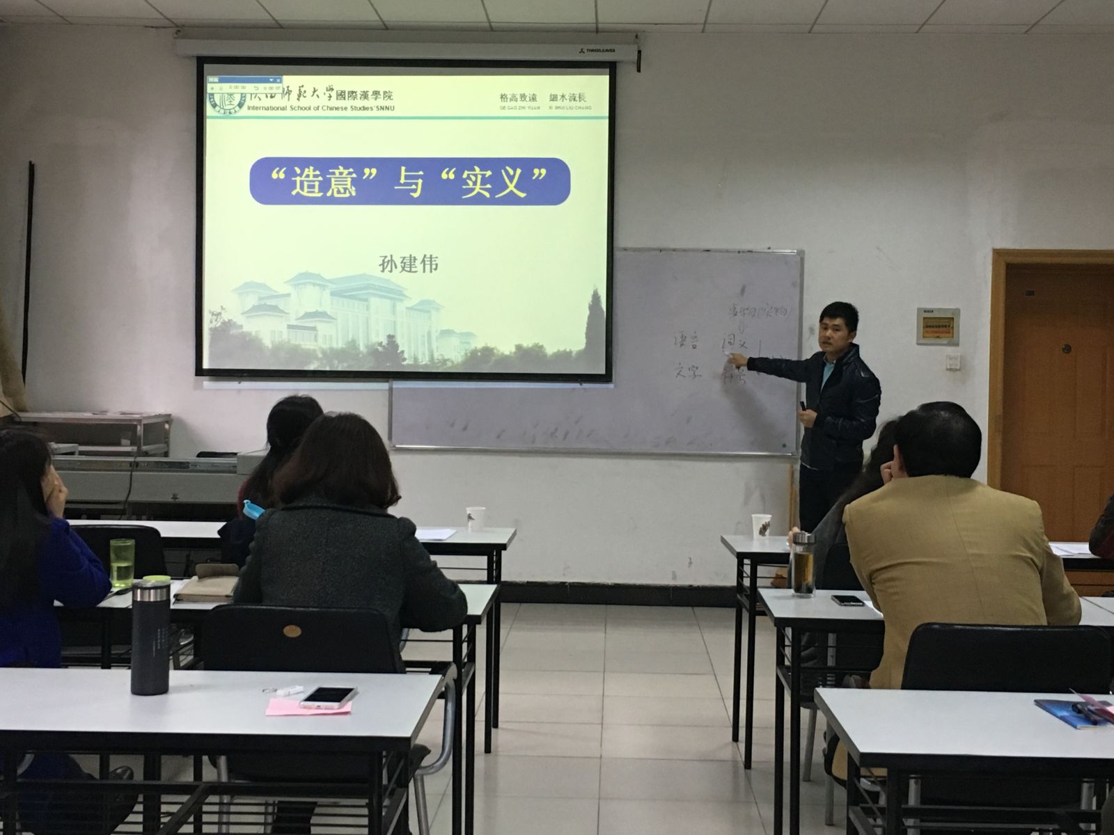青年教师孙建伟老师率先登台,向大家讲授了汉字构形的基本原理,区别了“造意”、“实义”等概念,贾泽林老师以最近的天气实例导入汉语“比”字句的教学,张欲晓老师以字母词的特点和规范性作为切入点展开教学,最后上场的李敏老师以留学生为教学对象,给大家展示了一个充满活力的对外汉语课堂。通过大赛可以看出,青年教师的进步非常快,他们在课堂上激情高涨、神采飞扬,教学语言标准流畅、板书规范整洁、穿着大方得体,塑造了博彩体育