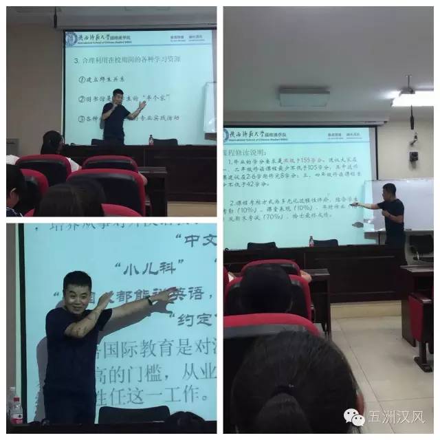贾泽林老师担任主讲,全面介绍了汉语国际教育是什么、学什么、怎么学。本科生辅导员胡丹老师及2016级汉语国际教育全体学生参加了此次入学教育。