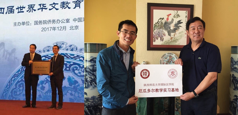 的华人学生参加接待并表演了节目。中央电视台四套《华人世界》专门报道了“筑梦一带一路,曹孝宏在厄瓜多尔教中文”的事迹,习近平主席及夫人与思源中国语博彩体育