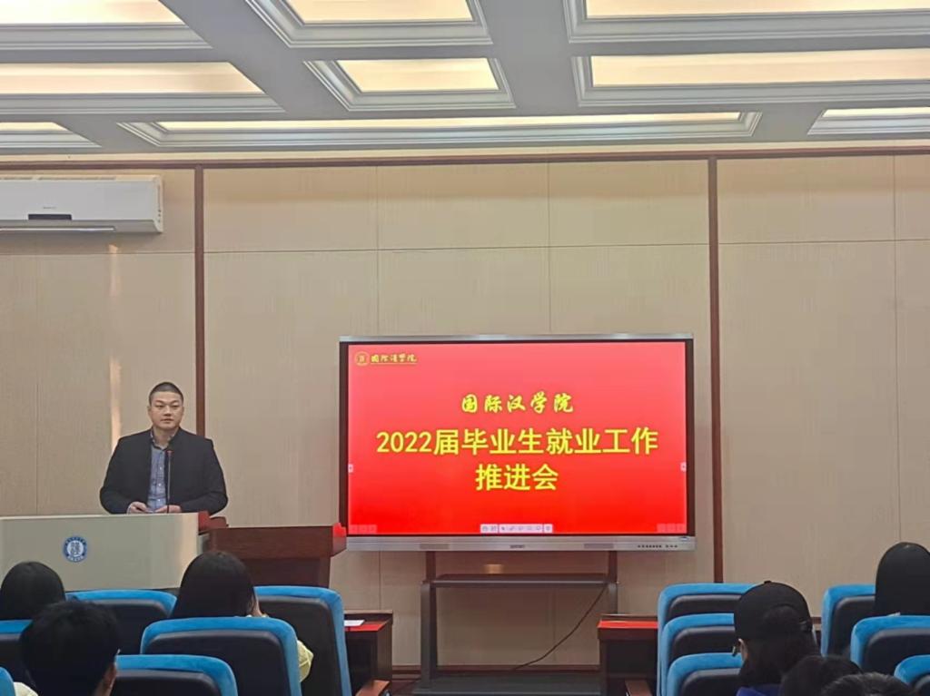 一层报告厅召开2022届毕业生就业工作推进会。团总支书记兼研究生辅导员朱红楠、研究生兼职辅导员肖扬及2022届毕业生参加了本次会议。