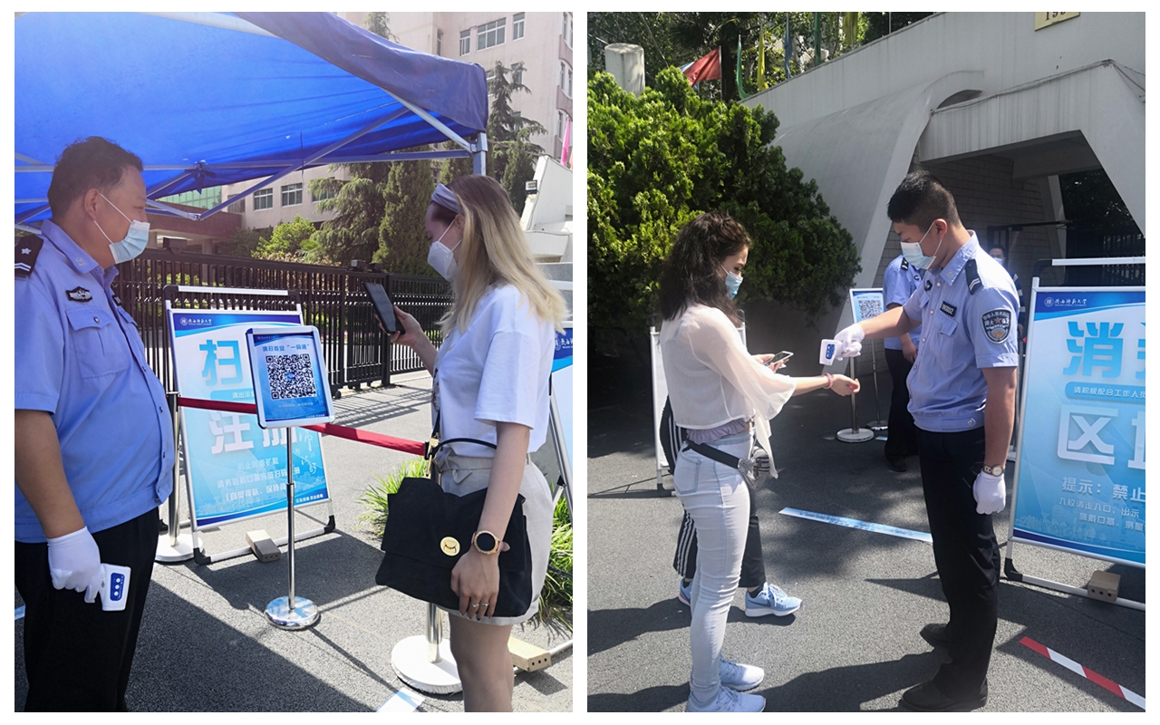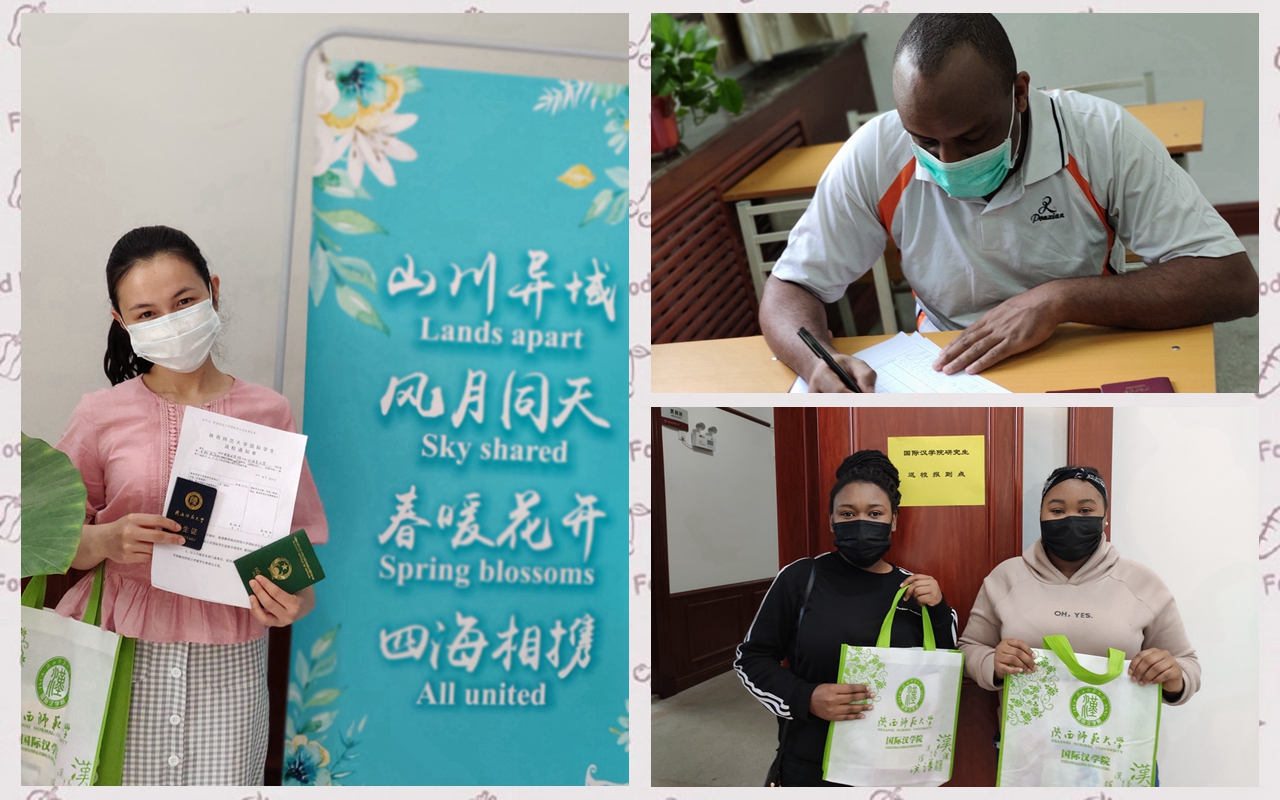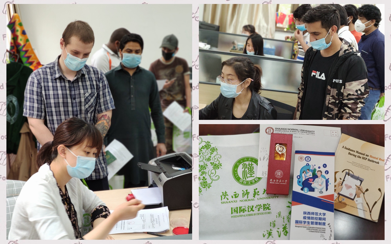 5月14日,居住在校内学生公寓的国际学生返校报到,其中雁塔校区71人,长安校区20人。同学们规范佩戴口罩,保持间距,按照预先安排的时间段依次报到,测体温、观看防疫知识宣传片、发放防疫物资、填写返校相关登记表、学生证注册、教学安排咨询……在工作人员的引导下,同学们高效、有序地完成了报到注册手续。