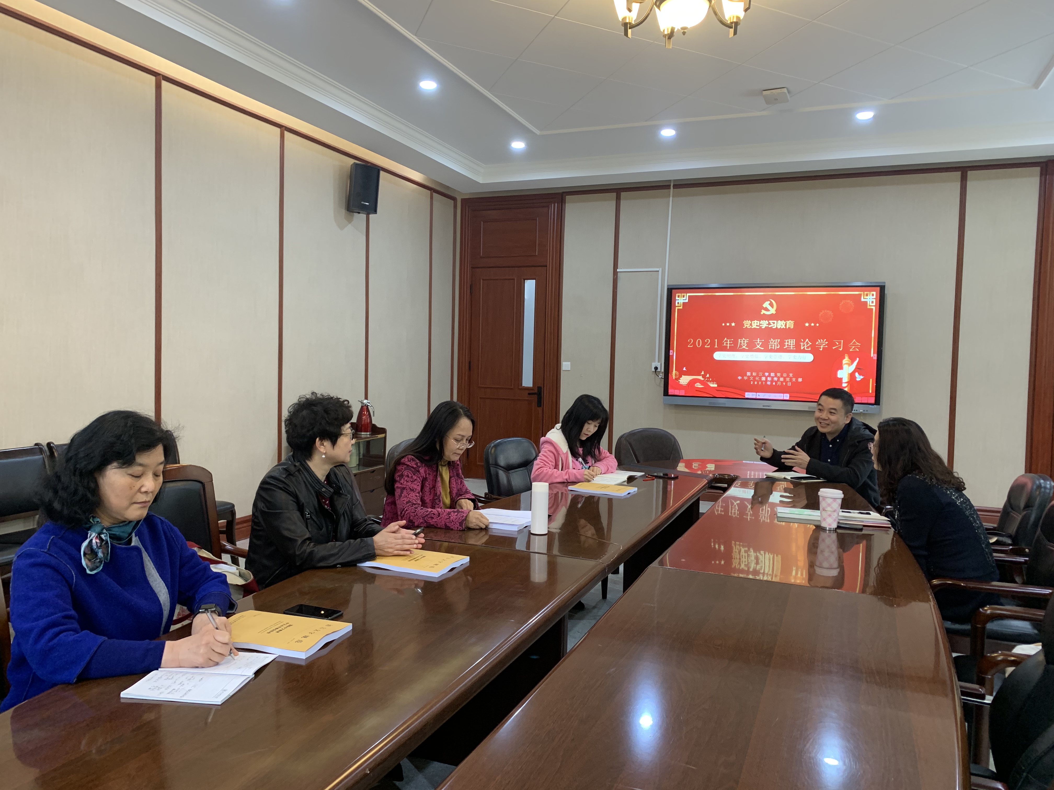 中华文化国际传播党支部召开党员大会,认真传达并集中学习了习近平总书记在党史学习教育动员大会上的重要讲话内容,研究布置了支部的落实措施。会议由支部书记贾泽林主持,全体党员参加。