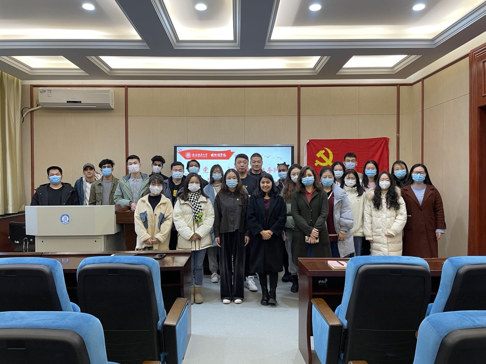 一层报告厅举行了党员战“疫”先锋队及国际学生志愿服务队成立大会。会议由党总支组织员朱红楠主持会议,党总支副书记张昊出席。