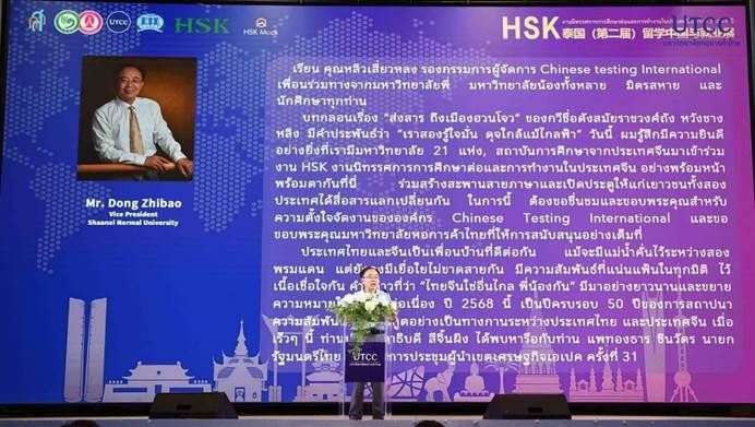 副校长董治宝在HSK泰国(第二届)留学中国与就业展代表中方高校发言,他表示博彩体育