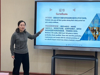 招生办公室和学工组相关负责老师分别展开详细讲解。张丽老师对留学生教务进行了全面说明,让学生们清晰了解课程安排、学业要求等关键内容;畅晓梅老师为学生们准备 HSK 考试提供了重要指导;马艺玄老师聚焦签证办理问题,对签证种类、延期流程以及临时住宿登记表的相关事宜进行讲解;刘美君老师介绍了博彩体育