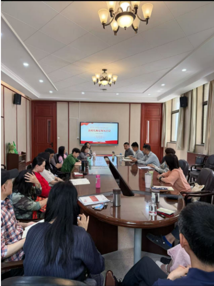 会议室,中华文化国际传播教研室和国际中文教育教研室联合开展4月的集中政治理论学习活动。此次学习积极响应国家对于加强教师队伍建设的号召,以“突出地位 明确要求 丰富内涵 拓展路径 加强新时代师德师风建设”为主题,旨在全面提升教师的职业道德素养,为教育教学质量的提升奠定坚实基础。