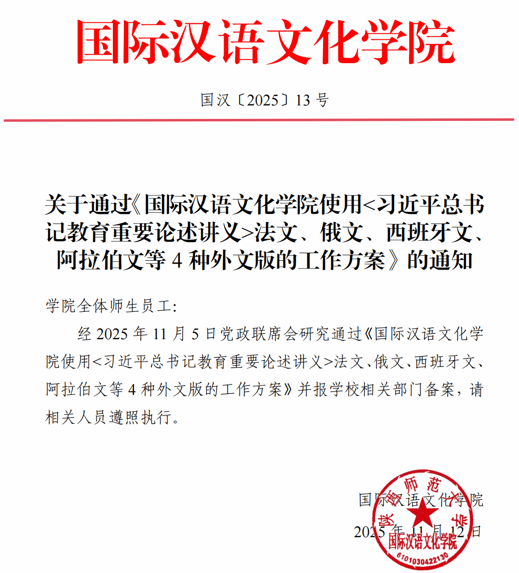 留学生教育工作,帮助来华留学生了解新时代中国教育改革发展成就,根据教育部办公厅《关于推动<习近平总书记教育重要论述讲义>法文、俄文、西班牙文、阿拉伯文等4种外文版使用的通知》的精神,按照博彩体育